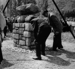 A. Gadal e J. v. Rijckenborgh na inauguração do monumento GALAAD em Ussat - Sul da França