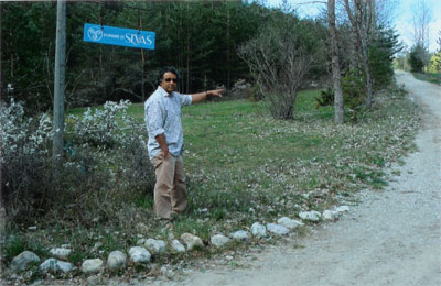 Dr. Robert H. Swami Persaud apontando para o Centro Domaine de Sivas nos Alpes Franceses